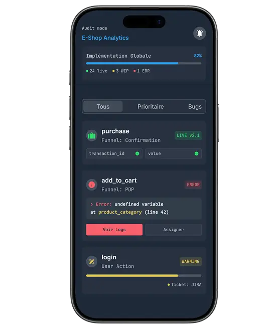 Your tracking and data self-healing engine: it corrects tracking and data in real time on your web and web app environments.